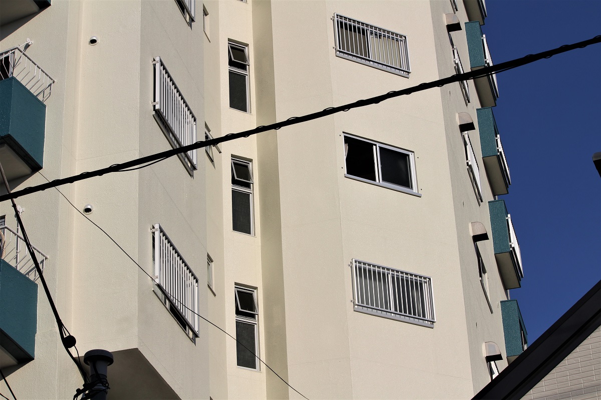眺望を楽しむため、窓格子を取り付けていない売主さんのお部屋がマンション外から確認できる