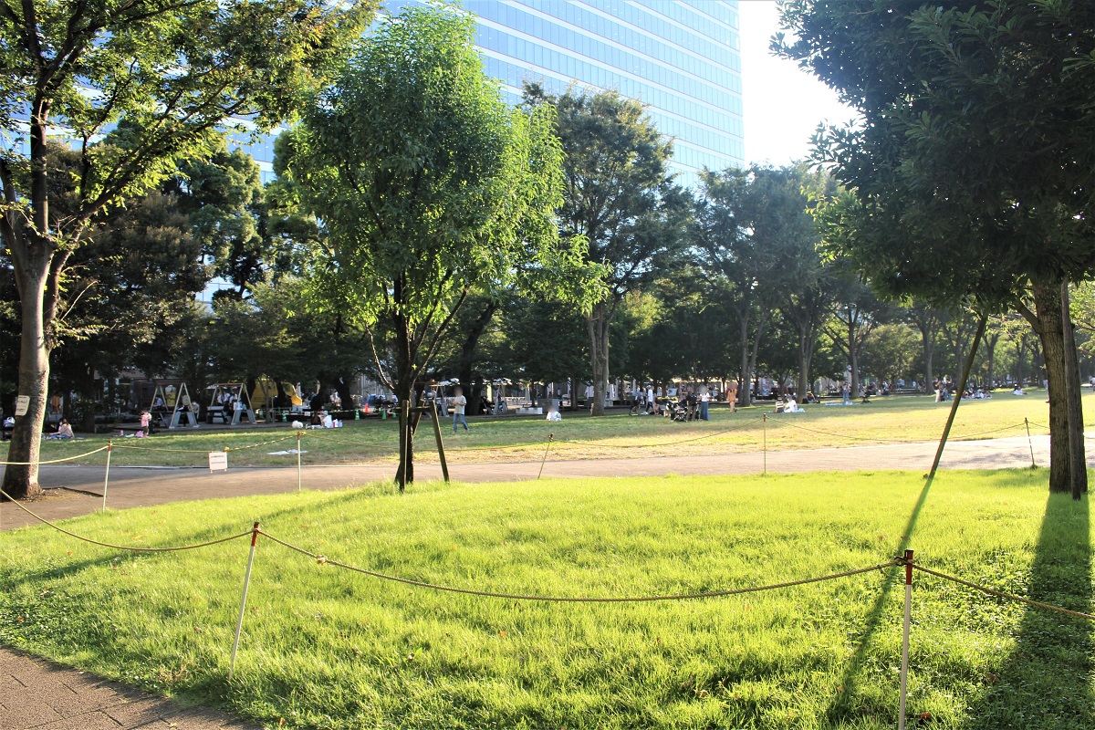 北口にある中野セントラルパーク。芝生がとても綺麗で、ファミリー層で賑わっていた