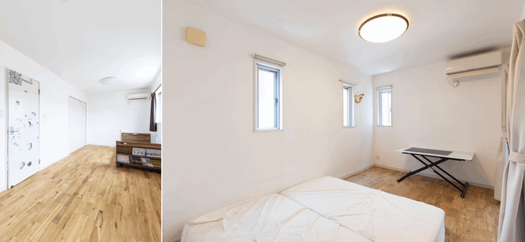 もともと自分の家族と両親と一緒に住んでいた家なので、それぞれの部屋が広く作られています。自然素材を利用した注文住宅で塗り壁にしているので、シックハウス症候群の懸念が少ない家というのも特徴です。