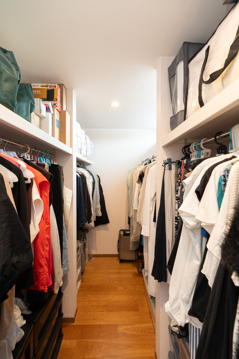また広いウォークインクローゼットのおかげで、寝室には余計な収納家具を置かずに、いつもスッキリ広々と過ごせます。衣替えも本当に楽ちんです!