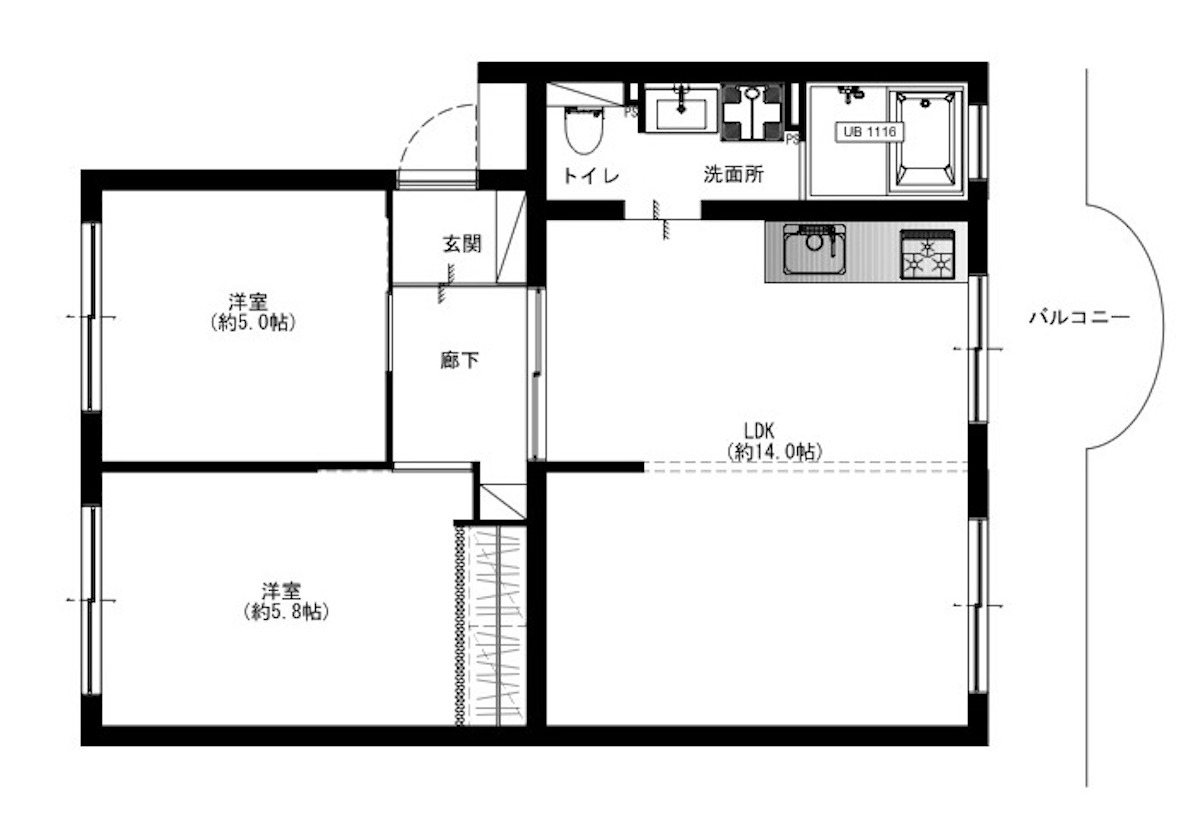 間取りは広大なLDを設けた2LDK
