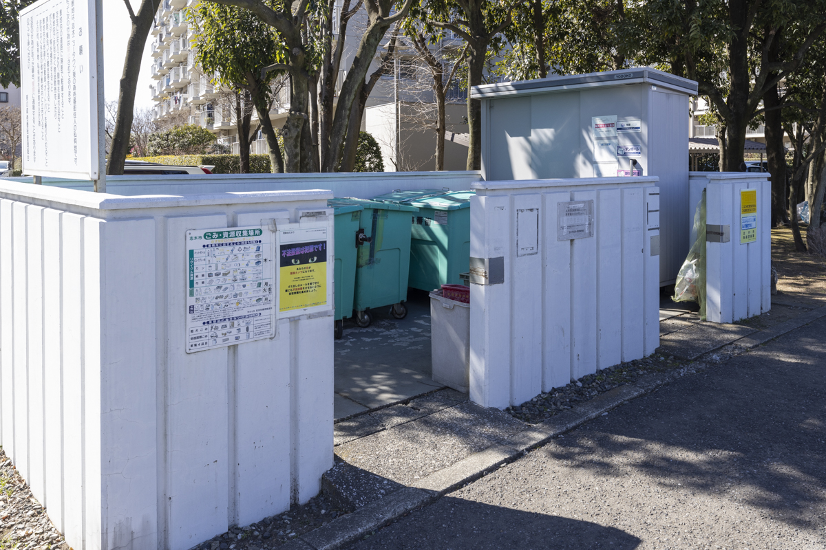 ゴミ置き場も棟ごとにある。自由に出しに行くことができる