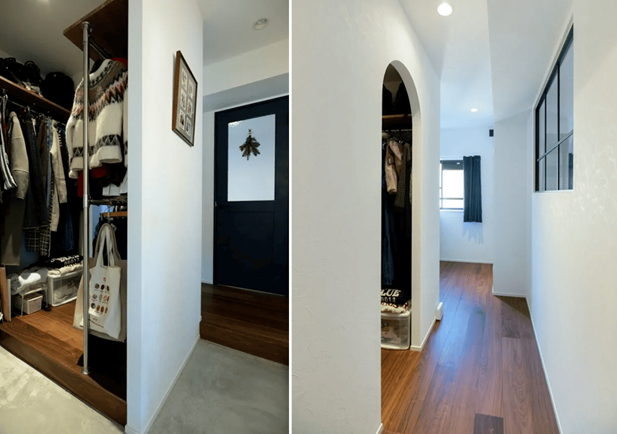 玄関土間と室内の両方からアクセスできるクロゼットはお出かけ前や帰宅後の動線がスムーズになります。