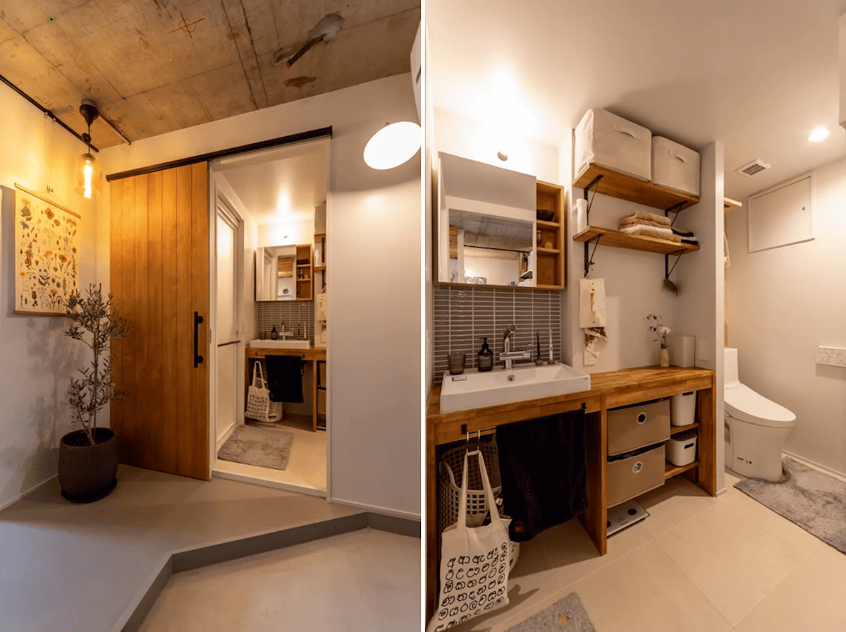 玄関まわりにサニタリーをつくると帰宅後すぐに手洗いや入浴できて衛生的にも気持ちがよいです。リノベーションでは、配管から新しくできるので、設備も新しいものが入れられます。