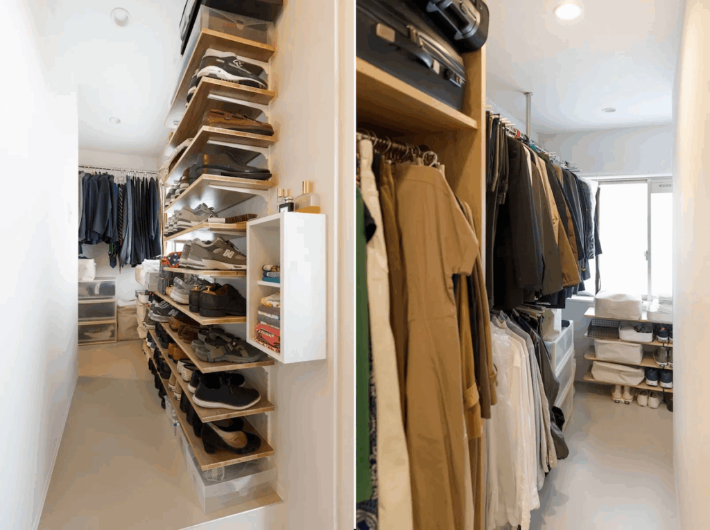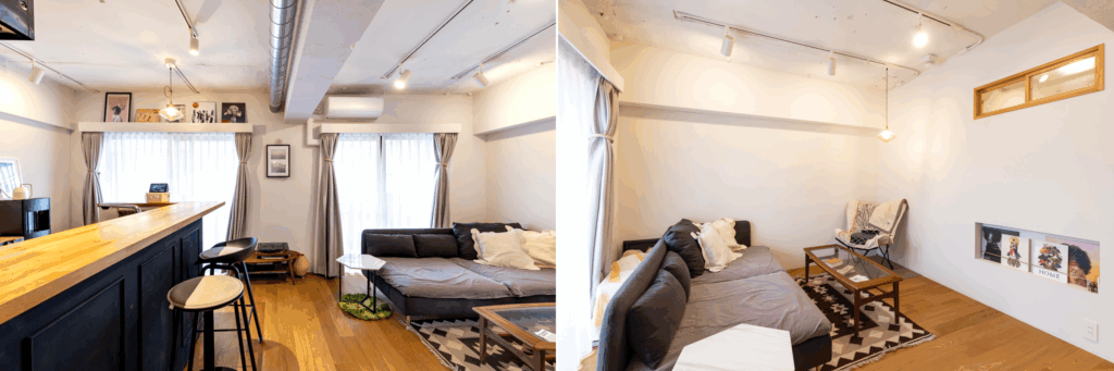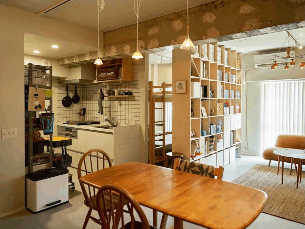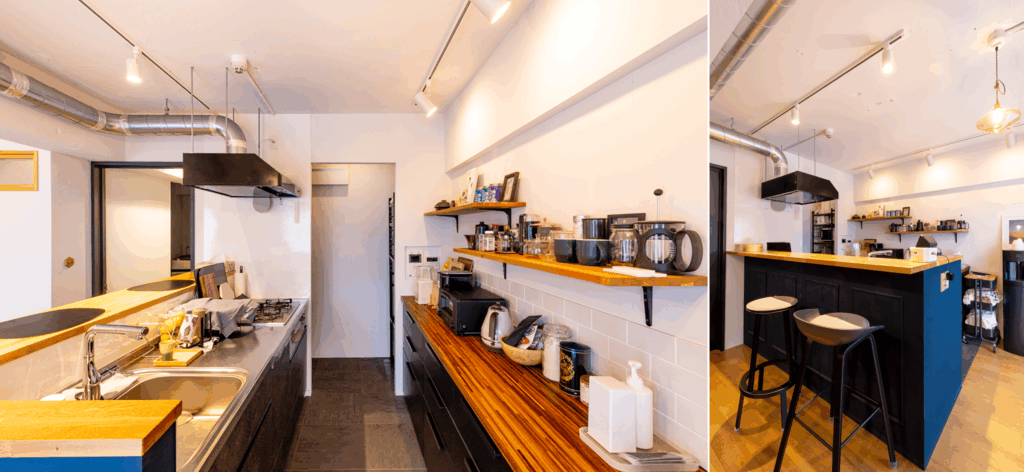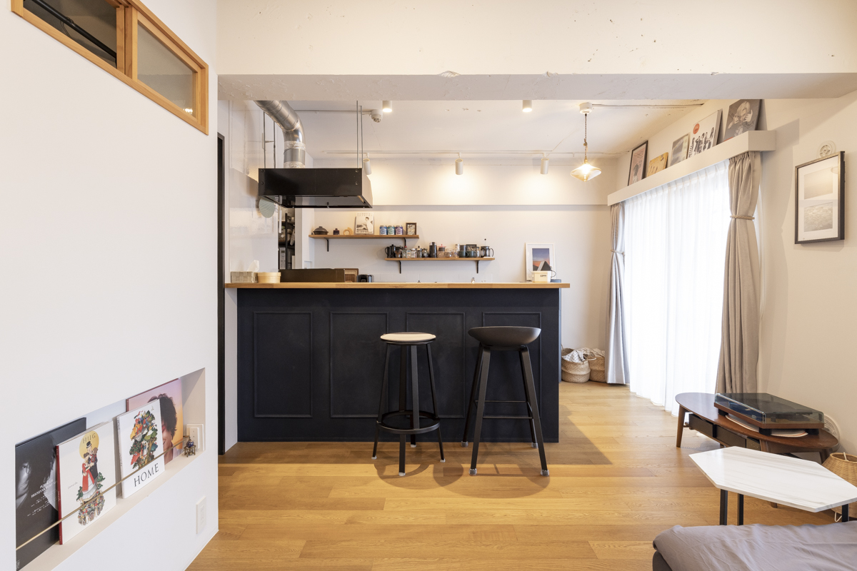 シンプルな内装が好みですが、コンクリートの打ちっぱなしは苦手なので壁は白く塗ってあります。もともとキッチンは壁付けタイプだったのをカウンタータイプにして、そこで食事できるように。テーブルを置くことも考えましたが効率性を重視して今の形にしました。