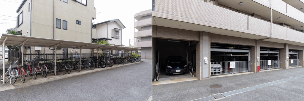 共有施設 | EV, オートロック, バイク置き場, 宅配ボックス, 駐車場, 駐輪場 |
