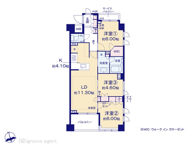 建物設備WIC, ディスポーザー, モニター付きインターホン, 床暖房, 浴室乾燥, 角部屋