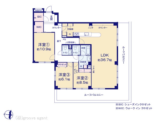 | 建物設備 | 床暖房, ルーフバルコニー, WIC, 角部屋, 浴室乾燥 |