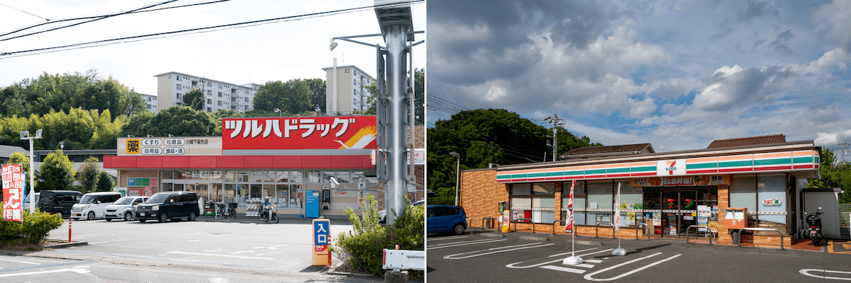 マンションから徒歩11分のところにはセブン-イレブンやツルハドラッグもある