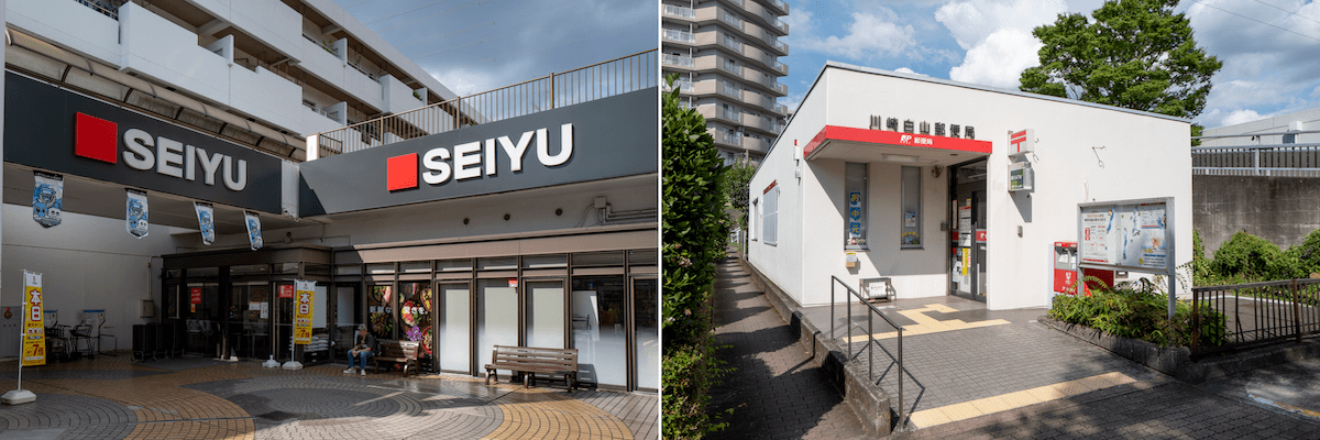 西友 新ゆりグリーンタウン店はマンションより徒歩10分。同じ敷地内に郵便局もある