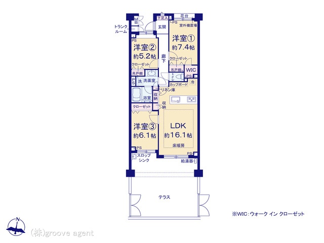 制限事項(特定事項)事務所使用:不可 ペット飼育:可(犬猫2匹まで・成長時体長70cm体重10kg以内・細則有) トランクルーム面積:0.54平米 室外機置場:1.15平米