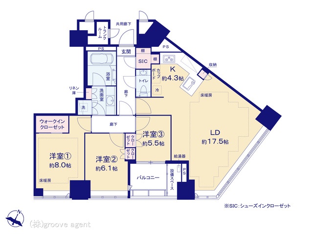 | 建物設備 | 24時間換気, 床暖房, ディスポーザー, WIC, 角部屋, 浴室乾燥 |