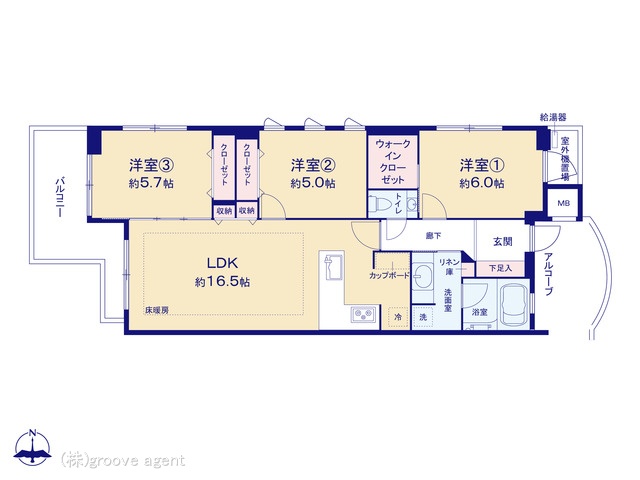 | 建物設備 | WIC, 床暖房, 浴室乾燥, 角部屋 |