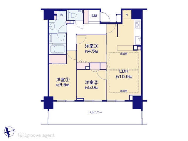 72㎡のゆとりある3LDK、床暖房完備