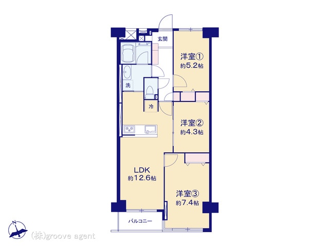 | 修繕状況 | キッチン(システムキッチン・W2100・食洗機) 浴室(ユニットバス・1218) 洗面室(シャワー付洗面化粧台・防水パン) トイレ(温水洗浄便座付トイレ) 給湯設備(給湯器・追焚・マルチリモコン付) 配管(給水、給湯、排水管(専有部分)) エアコン先行配管(洋室1・3) 共通(照明器具、建具、床:フローリング(遮音等級LL45、LDK、洋室、廊下)、フロアタイル(玄関、洗面室、トイレ)、壁天井:クロス貼、室内クリーニング) |