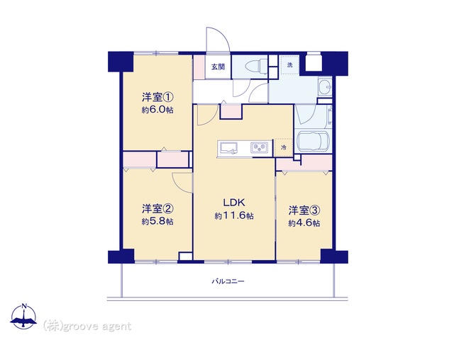 | 修繕状況 | キッチン(システムキッチン・W1950・食洗機) 浴室(ユニットバス・1216) 洗面室(洗面台・防水パン) トイレ(温水洗浄便座付トイレ) 給湯設備(給湯器・追焚・マルチリモコン付) 配管(給水、給湯管(専有部分)) エアコン(洋室3) エアコン先行配管(洋室1) 共通(照明器具、建具 床:フローリング(LDK、洋室、廊下) フロアタイル(玄関、洗面室、トイレ) 壁天井:クロス貼 室内クリーニング) |