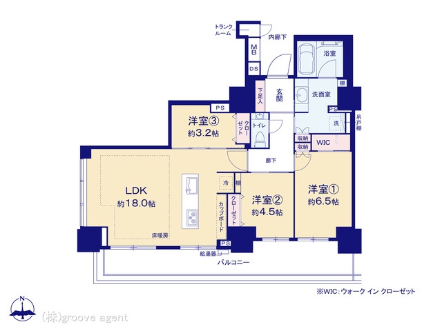 | 建物設備 | 24時間換気, 床暖房, WIC, 角部屋, 浴室乾燥 |