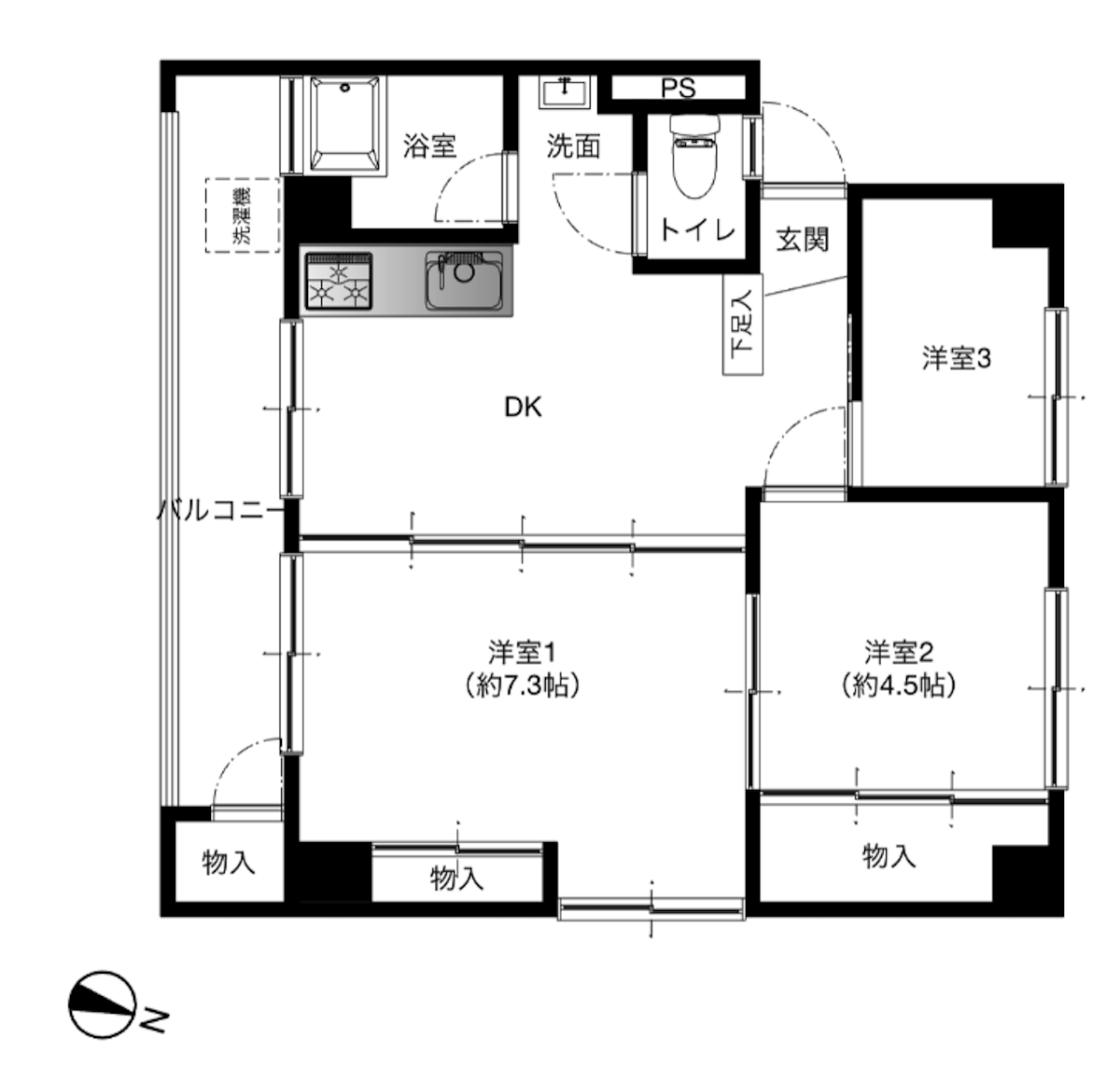 46.08ã¡ã®3LDKãæ£æ¹åœ¢ã«è¿ãéåãã¯ãªããã®èªç±åºŠãé«ã