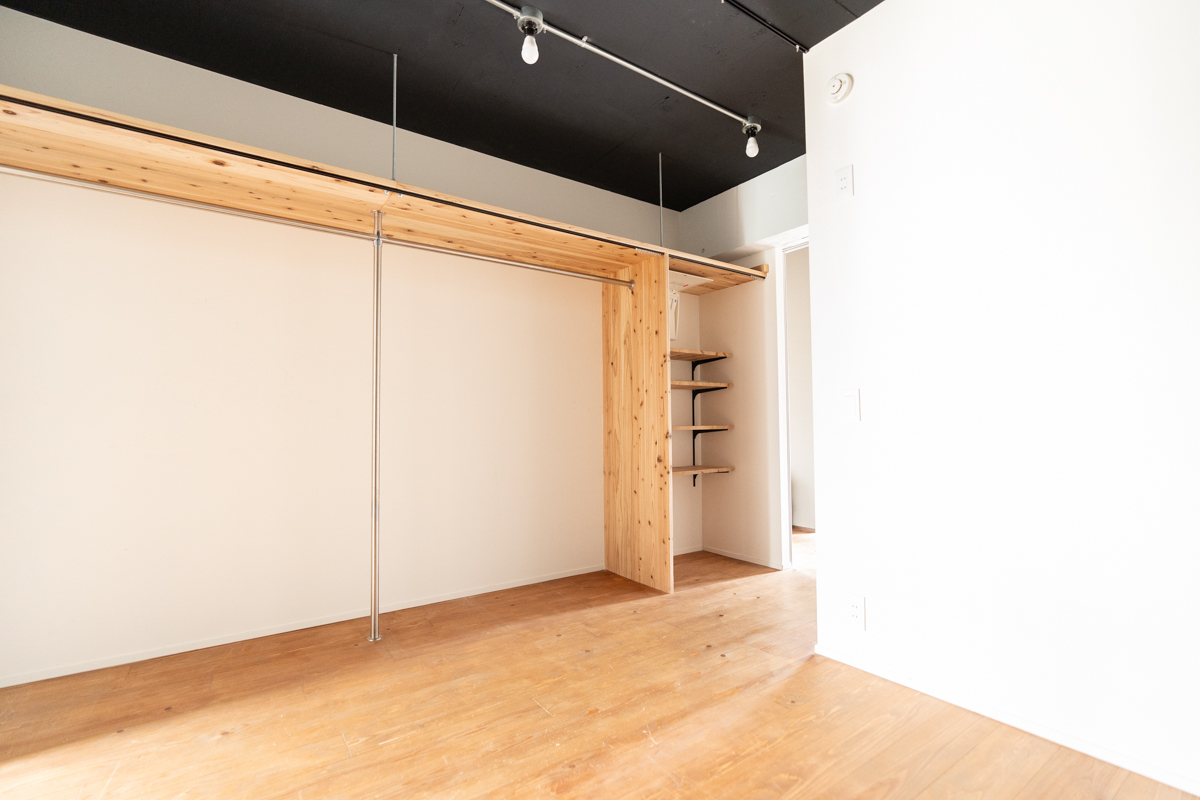 9帖の洋室は寝室として使用するのもおススメ。オープンクローゼットは、部屋の一部としても利用できる