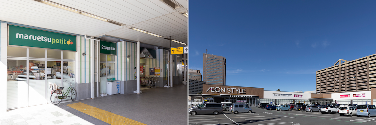 週末のまとめ買いでは、せんどうやイオンスタイルをよく利用しています。近くにはセブンイレブンもありますし、千葉みなと駅の中にあるマルエツプチやマツモトキヨシも便利で、買い物には困らない環境です。
