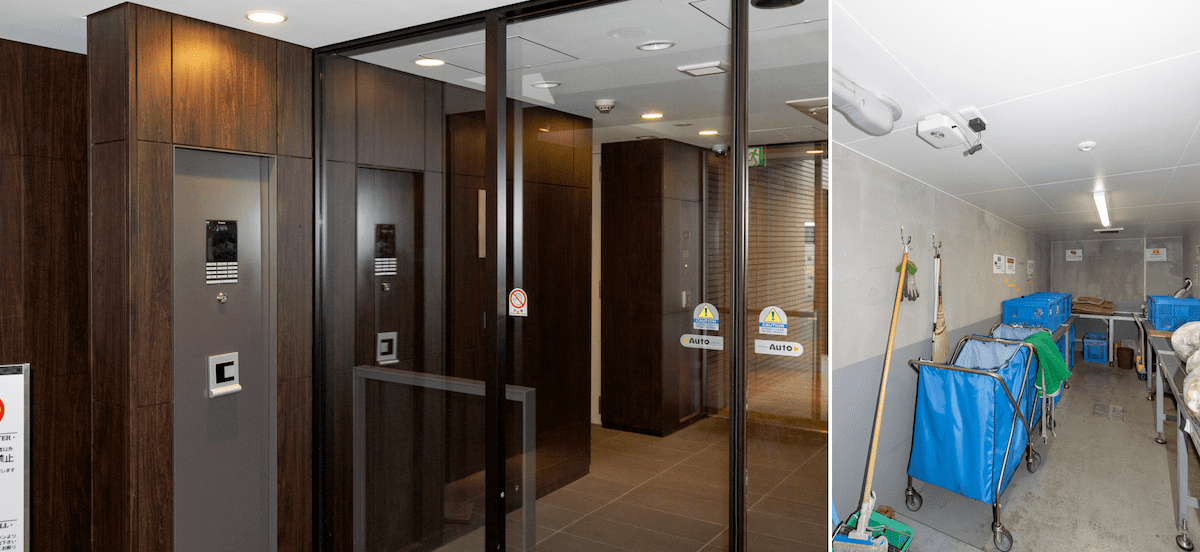 二重のオートロックでセキュリティー面も安心。ゴミ置き場は敷地内で24時間ゴミ出しOK