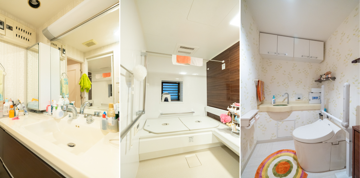 リノベなら見えない配管から新しくできます。写真のように在来工法でこだわりの水まわりをオーダーメイドすることも可能です。