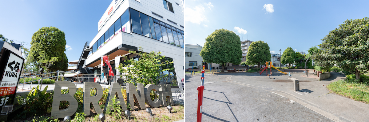 複合商業施設のブランチでは定期的に映画上映会などの様々なイベントが開催され楽しめる(左)周辺には広い公園も多い(右)