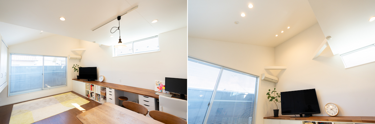 天井が高く風通しの良い家にしたいという思いがあり、窓の配置にこだわりました。適度に日が差し込んで、明るいところが気に入っています。友人を招いても「居心地が良いね」と言ってもらうことも多いですね。車の通りがほとんどなく静かで、リビングで仕事をしたり、キッチンで料理するのが至福の時間です。