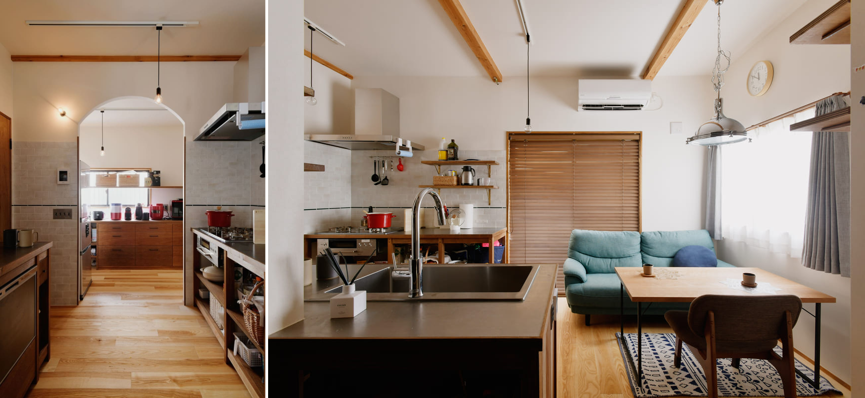 2人以上でも作業しやすい二の字キッチンにするのもおすすめ。配膳や片付けもしやすく、家族が自然と家事参加できるキッチンに。