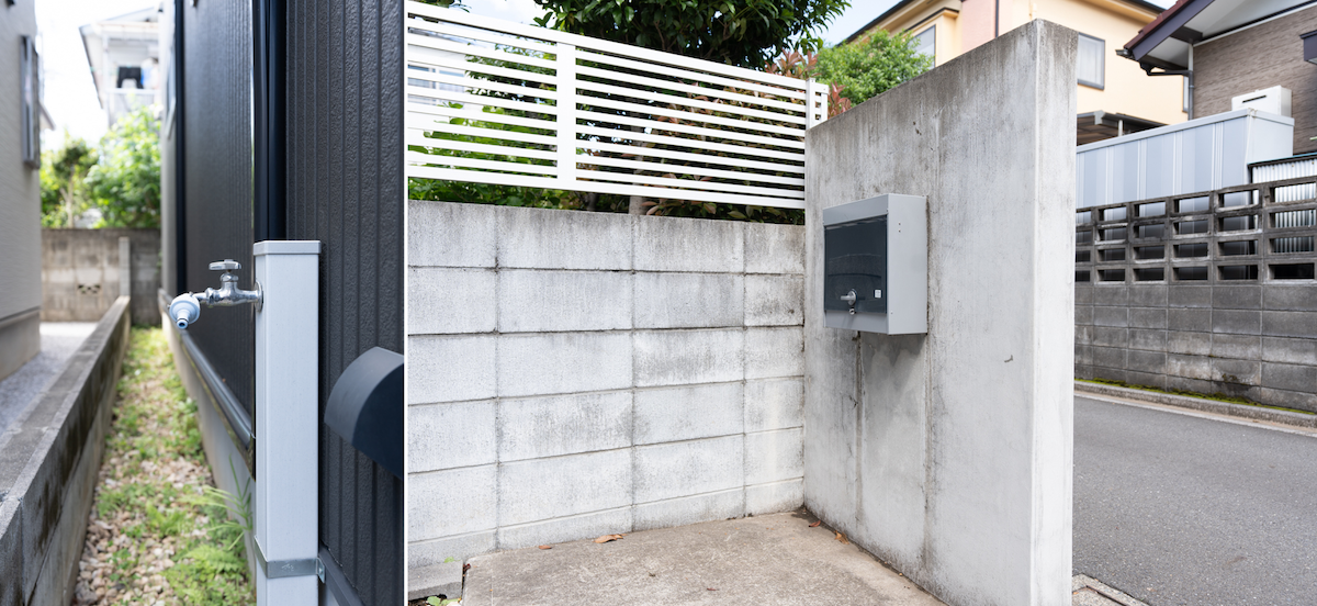家の脇に水道を引いているので洗車に掃除、水やりなどにも◎(左)ゴミ出しは家の敷地内で済むのでとても楽(右)