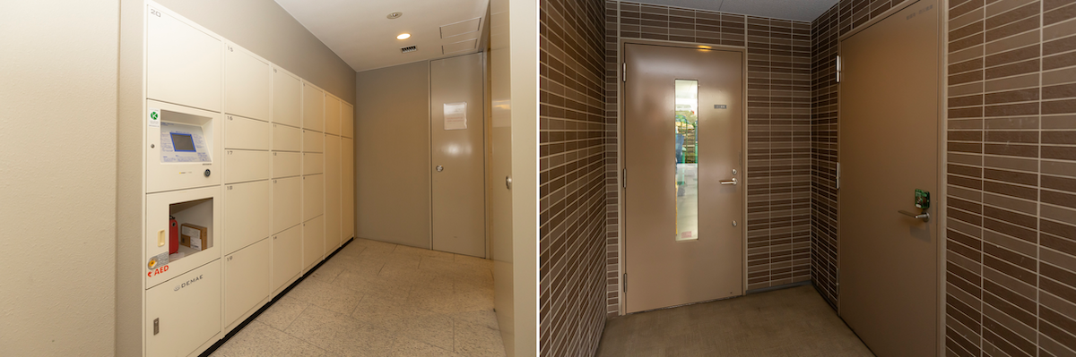 宅配ボックスを設置。ゴミ置き場は敷地内で、きれいに管理されている