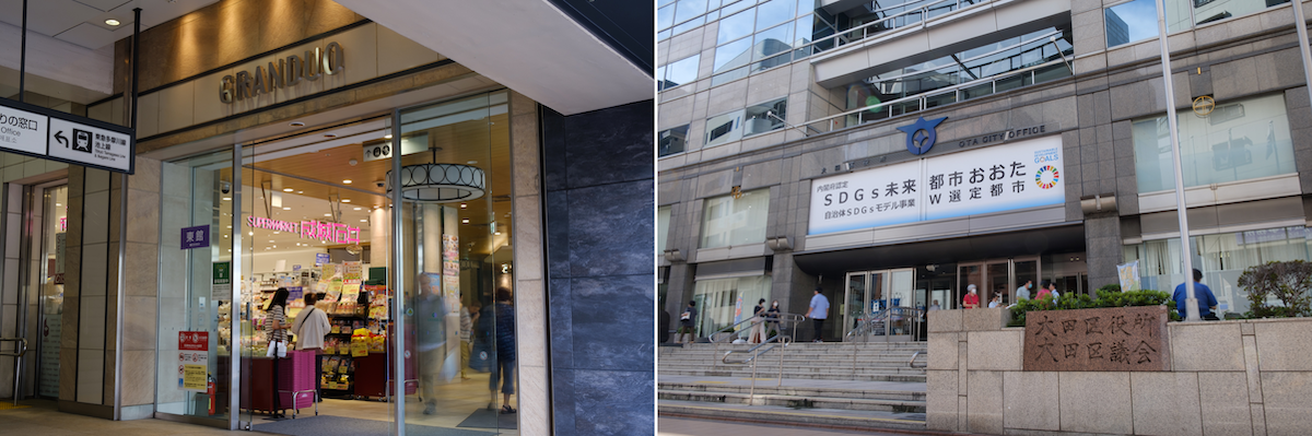グランデュオの東口側には成城石井。大田区役所は東口から徒歩1分