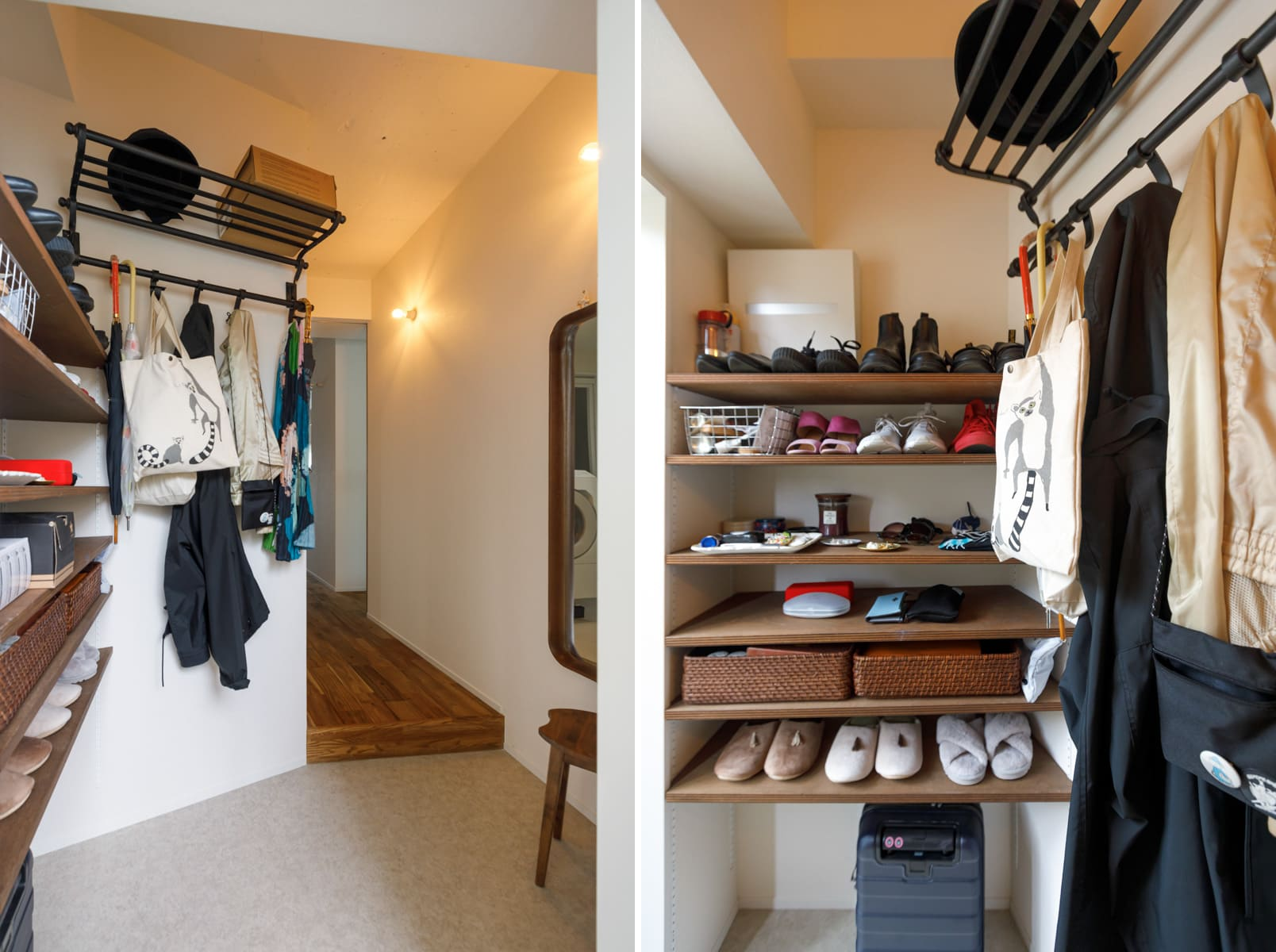 収納スペース確保を優先し、思い切って洗面台を撤去した場所にトイレを移設したそう