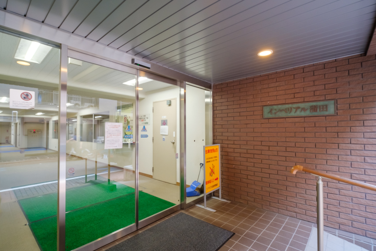 スロープ付きのエントランスはガラス張りで、視認性が確保されている