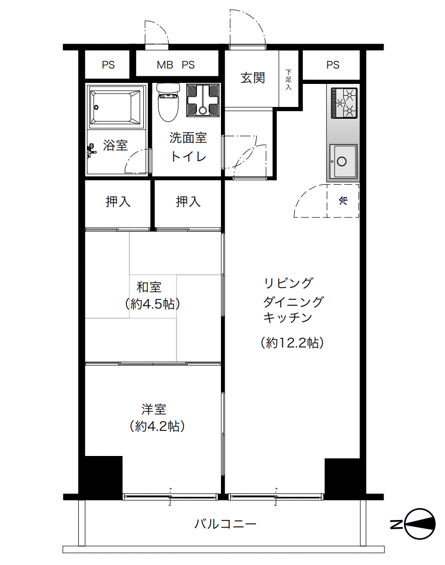 専有面積は約45㎡。元は3DKのお部屋を入居時にリフォームして、現在は2LDKの間取りです。