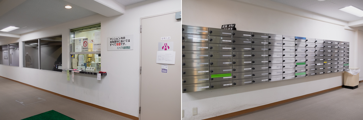 入り口を入ってすぐの場所に、管理人室と郵便受け
