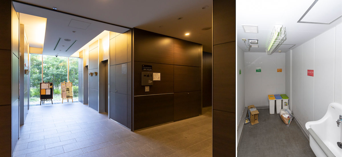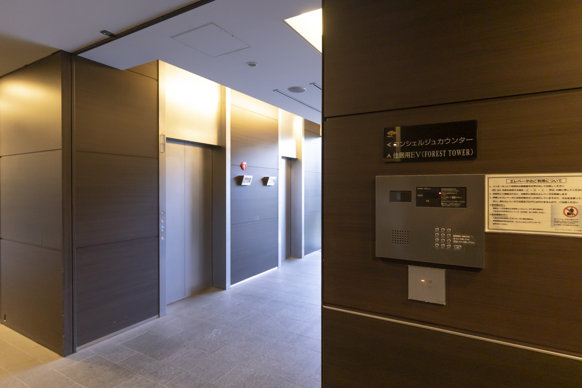 複数基のエレベーターで待ちぼうけをくらうことはなく、ゴミ置き場が各フロアにあるため、ゴミ捨てのために敷地内を長く移動するようなこともない
