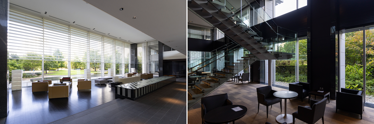 庭園を眺めながら過ごせるラウンジ。17階にもビューラウンジがあり、貸し切りでなければ自由に利用できる