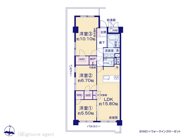 | 建物設備 | WIC, モニター付きインターホン, 床暖房, 浴室乾燥, 角部屋 |