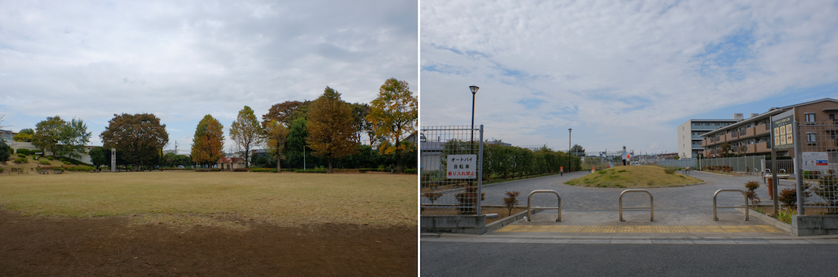 文理台公園(左)は、遊具や原っぱ、人工の滝、展望台も備える中規模の公園。物件隣の下保谷五丁目第1公園(右)では、小さな芝生の丘で保育園児たちが駆け回っていた
