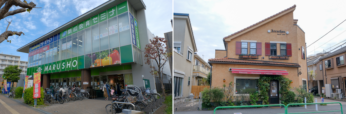 丸正 保谷北口店(左)は生鮮食品の評判が上々。駅徒歩5分のアルカション本店(右)はフランス菓子の名店