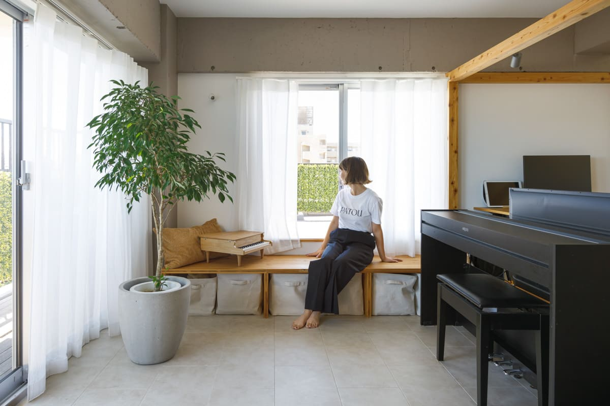 今のままでもすてきなお部屋ですが、より自分好みにアレンジするのも良いですね。たとえば、ベンチを兼ねた収納を窓辺に造作してみるのはいかが? 陽の光が心地よい、くつろぎスペースになりますよ。