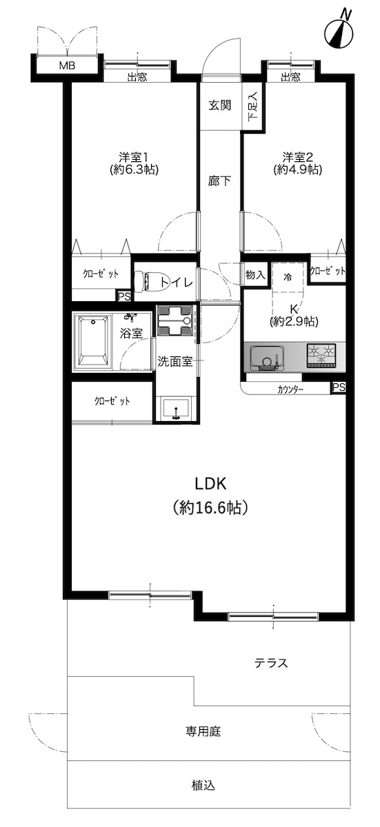 物件は築28年のマンション1階、2LDKのお部屋です。