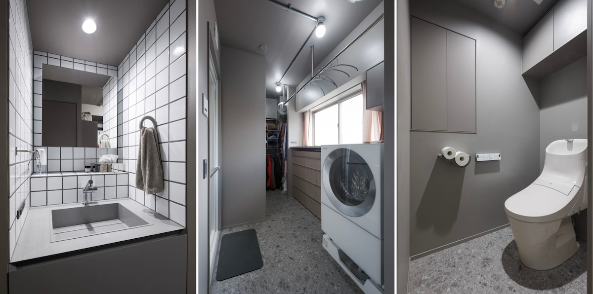 リノベーションなら、設備はもちろん配管から新しく交換できます。間取り変更で脱衣エリアを拡げ、ランドリールームを兼ねれば家事ラク・時短も叶えられますよ。