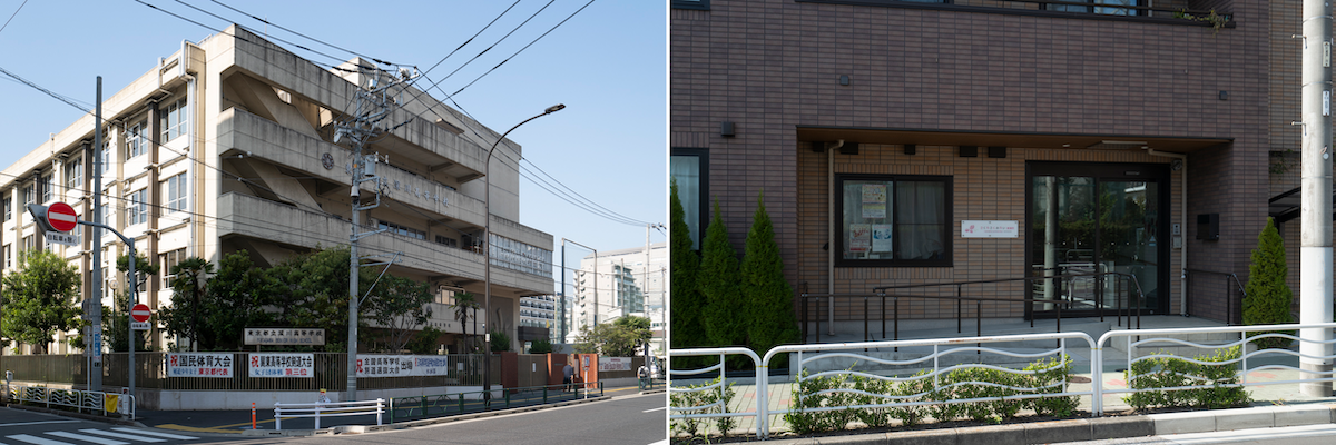 東京都立深川高等学校(左)は徒歩数分。学校や保育施設も近いが豊富なファミリーエリアの東陽町