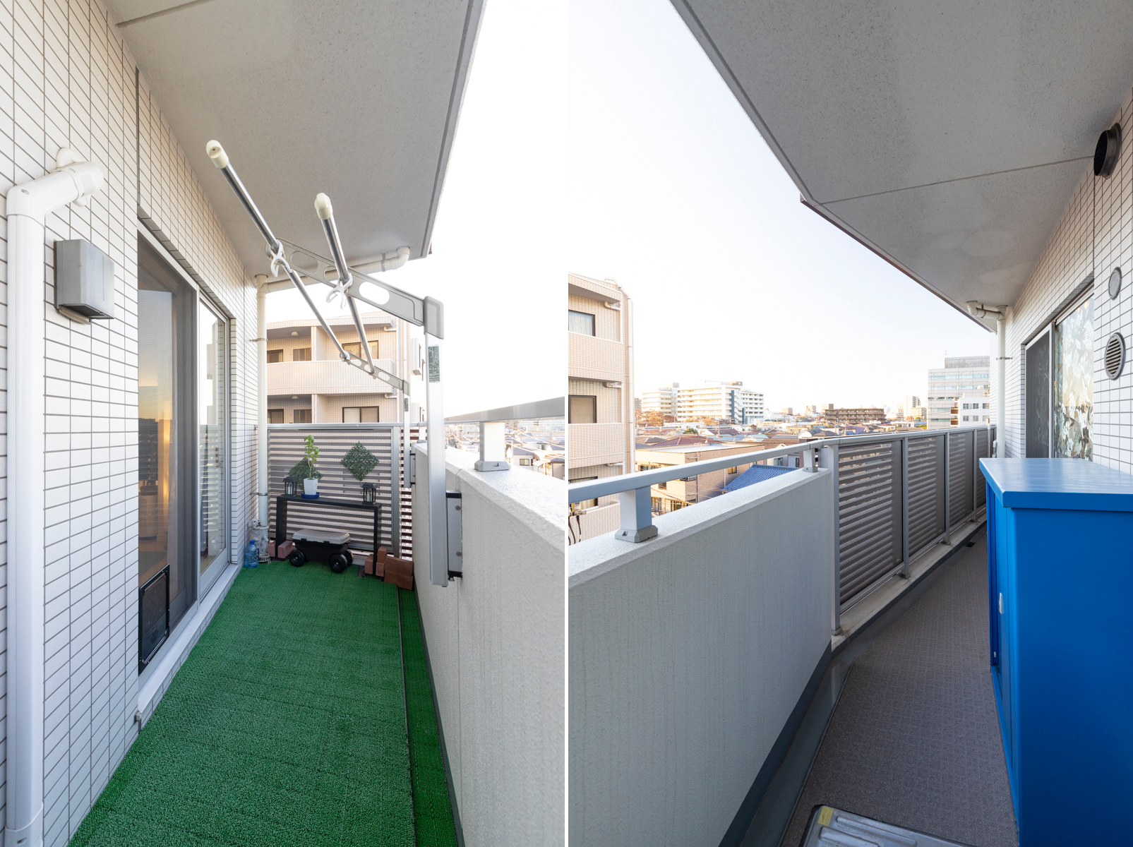 バルコニーは2つ。いずれも家事を行うには十分な広さ。家庭菜園も行っていたとのこと