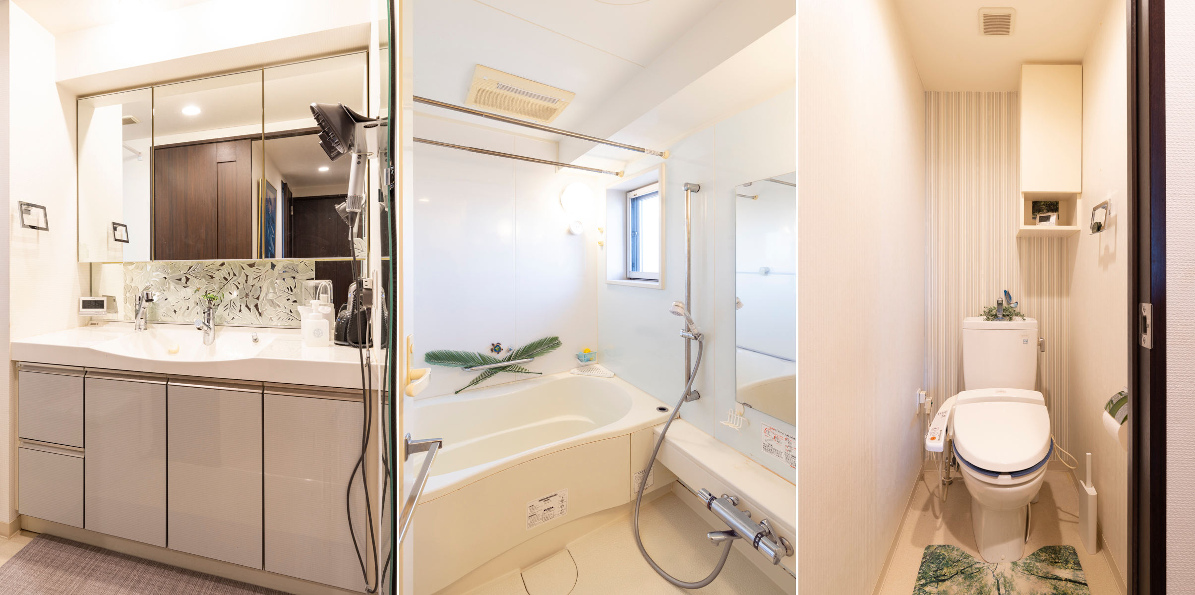 きれいに維持されている水周り。洗面台が大きく身支度にも便利