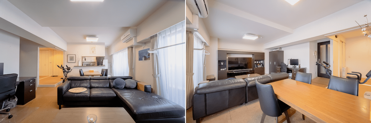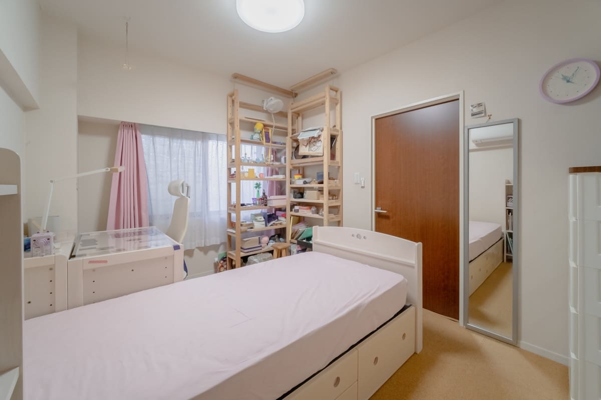 昔はリビングに室内用ブランコを置いたり、大きなクリスマスツリーを飾ったりしていました。ベランダが東向きなので、冬の午後は冷えが気になるかもしれません。二重窓などへ交換すると、より快適に暮らせると思います。