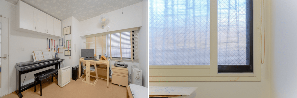 玄関横・北側の居室には入居後に結露対策のリフォームを施した。壁に断熱材をいれ、窓は二重窓になっている