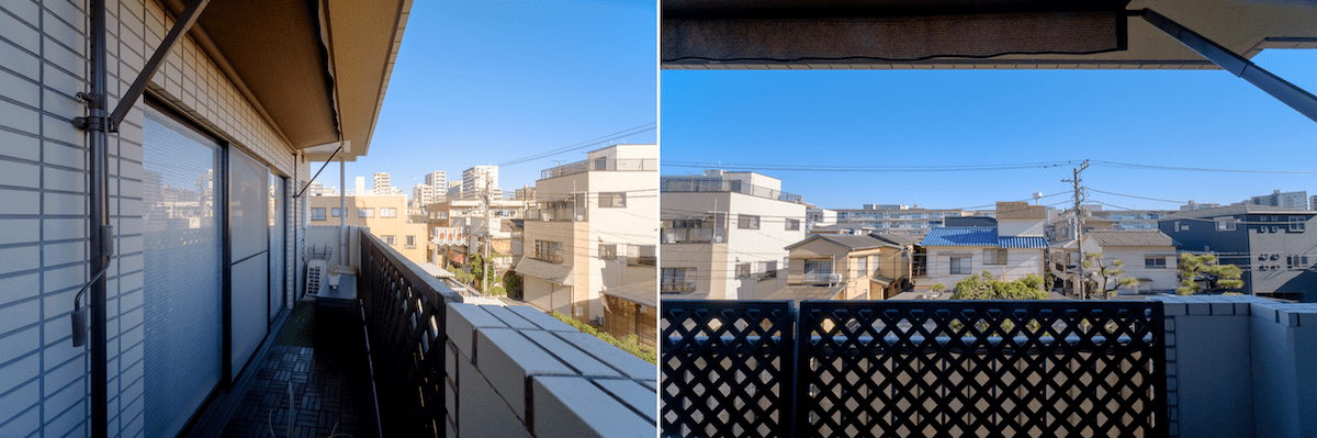 バルコニーには目隠しのラティスボードや、サンシェードを設置していた